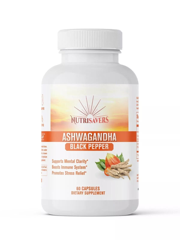 Ashwagandha & Black Pepper 1300mg, Adrenal Support Supplement, 60 Vegetable Caps