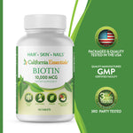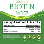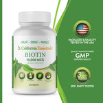 California Essentials Biotin 10,000mcg is formulated to help promote hair restoration, improved skin, and stronger nails. Biotin is important for macronutrient metabolism and energy production.
